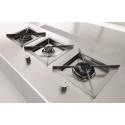 Die Kapuze Falmec Down Draft WORKTOP 120 Edelstahl wird vollständig in stahl mit scotch-breite-finish. Das Gerät kommt integriert in den arbeitsplan, hinter dem herd und, wenn abgeschaltet, sieht aus wie ein einfaches metallband.