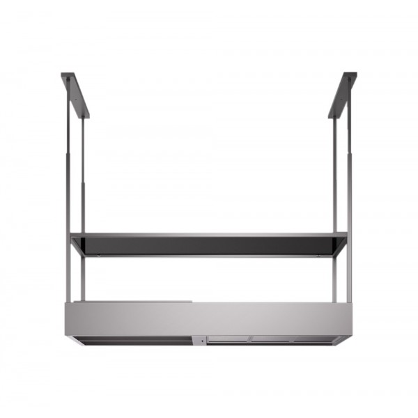 Designed by Francesco Lucchese, die Raum 130 Kapuze ist verfügbar in edelstahl, hier vorgeschlagen, und in schwarzer farbe und besteht aus einer zweifachen inselstruktur, mit glasablage, nützlich für die aufbewahrung von geschirr oder anderen gegenständen des tages; die kapuze ist auch mit einem boden, der zwischen einem saugenden körper und einem optionalen grünen bereich geteilt ist, für die vorbereitung eines kleinen inländischen gartens entworfen. Dies kann mit zwei Tanks und Lichtkits für den Innenanbau ausgestattet werden, was den Prozess der Photosynthese sowie das Wachstum der Pflanzen selbst begünstigt.