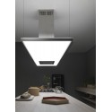 Das Verkettungselement zwischen den verschiedenen Teilen der Haube ist durch lED-Beleuchtung das mit all seiner stärke das gefühl der extremen leichtigkeit, die das wesen des konzeptes darstellt, überträgt: das licht breitet sich homogen über die gesamte oberfläche, nach unten und nach oben aus und beleuchtet damit nicht nur den arbeitsplan, sondern auch den umgebenden raum, wodurch eine angenehme atmosphäre innerhalb der küchenumgebung entsteht.