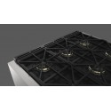 Das professionelle Kochfeld ist mit 6 flexiblen Gasbrennern (Crescendo Dual Messing), robusten kontinuierlichen Grills in Gusseisen und Wanne mit speziellen mattschwarzen Emaille behandelt, die Haltbarkeit und einfache Reinigung garantiert.