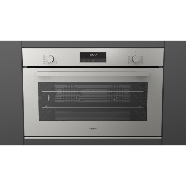 Das Design dieses Produktes zeichnet sich durch die Intuition und die unmittelbare Nähe der klassischen Handstücksteuerung aus, die dann funktionsfähiger Abschluss im digitalen Display ist. Die unterschiedlichen Timing-Funktionen sind daher einfach einzustellen und deutlich lesbar. Der Ofen hat einen ultraschwarzen emaillierten Kochbereich und eine interne Kapazität von 96 Litern. Es verfügt auch über ein wichtiges Sicherheitssystem, das Gaserfassung und Stoppsystem umfasst.