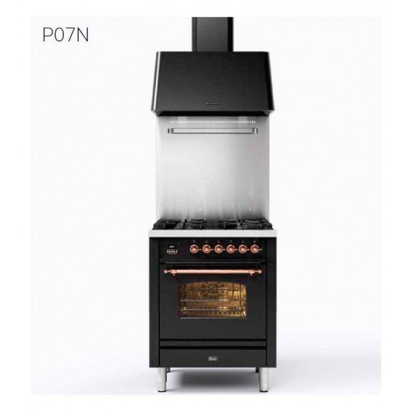 Ilve Couch Küche P07N Nostalgie Flache Küche cm 70 konfigurierbar rostfrei oder gefärbt : Art des Ofens - NEIN, Fertigknöpfe und Handläufe - Brüniert - B, Stoßdämpfer - Schwarz glänzend - BK