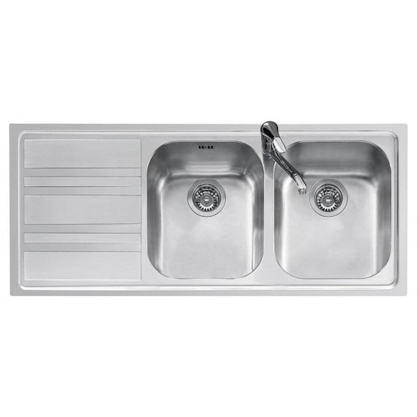 Jollynox 1LLF120/2S3K Life Einbauspüle, 2 Becken, 116 x 50, mit Abtropffläche links, Edelstahl