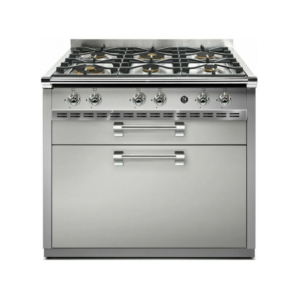 Stahlküche A9C Ascot Professionelle Küche cm. 90 : Endet auf Anfragestahl - CROMO finitura standard, Farben auf Anfragestahl - stahl, Stahlfeldkonfiguration - 6W 6 Brenner 2 Wok