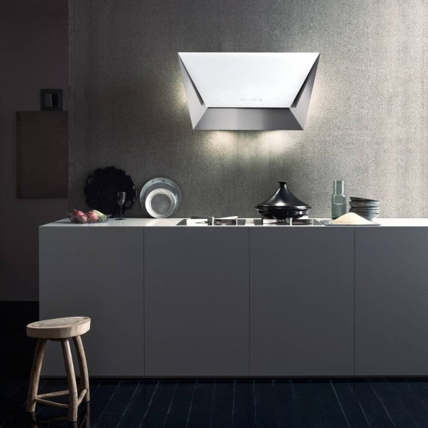 The wall hood PRISMA by Falmec has a markedly innovative design inspired by shape of diamond, with its characteristic prism cut. The conjunction of the trapezoidal forms of structure andblack or white glass top door, they create thevisual effect of a prism, giving the hood a strong characterization and customization.