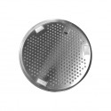 The hood is equipped with circular filter TOP, of the same diameter and body size hood, characterized by an external frame with smooth surface and circular holes: this involves a greater aspiring surface guaranteed by the circular shape, a greater filtering performance thanks to a more effective steel wire grid and finally a qualitatively better aesthetic appearance. In the same structure of the filter also the rooms for the led lights have been obtained.
