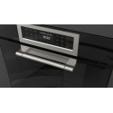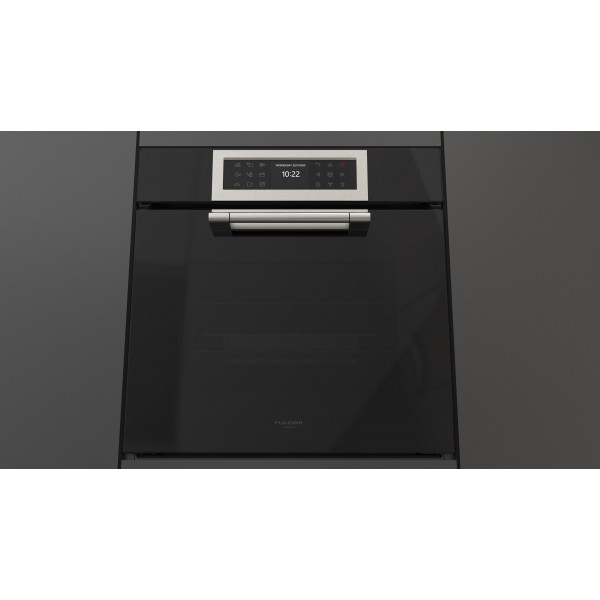 Atmos, Fulgor Milan steam oven, equipped with 24 cooking functions, ideal for both the most complex and articulated preparations and for the simple and fast ones. High quality appliance with automatic opening of the dashboard controls for easy filling of the water tank that happens without opening the oven. There are numerous recipes for cooking even prolonged foods (up to 3 hours of steam in continuous). Water level sensor and recovery alert. Functions of cleaning cavity, circuit and descaling. The equipment of the series accessories includes total extraction telescopic guides, temperature probe (Meat Probe), stainless steel vapor kit (holed tray and top with its support) tray for AirFry, glazed tray and a flat grid.