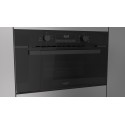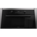 The oven has a stainless steel cooking compartment and an internal capacity of 34 liters, it is also equipped with an important safety system that includes door with safety lock, door contact switch and cooling ring ventilation. The range of accessories includes round grill, flat grill and a swivel plate.