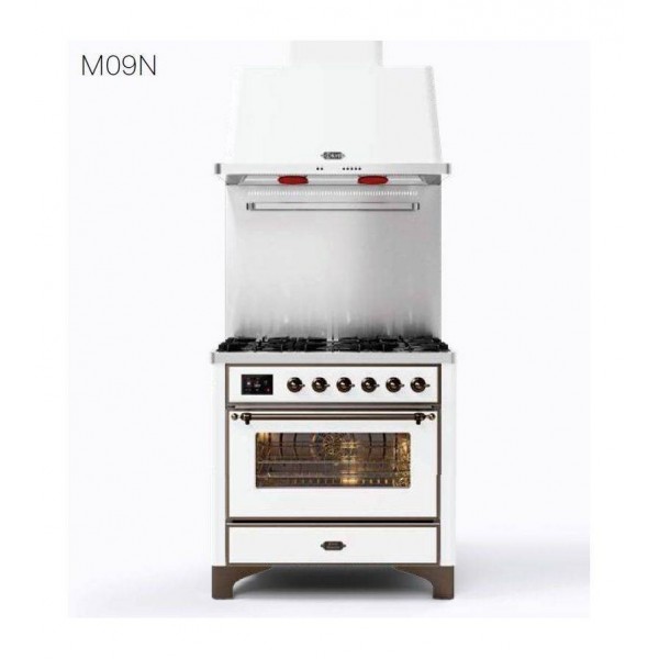 Ilve Kitchen M09N Majestic Flat kitchen cm 90 configurable stainless or colored : Finishing knobs and handrails - Brunette - B, Hob type - PC GAS 6 FUCHI 90cm, Shock finish - Grafite mat - MG