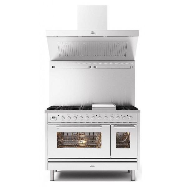 Ilve Kitchen P12W Professional Plus Kitchen Set in 120 cm stainless or coloured : Hob type - PC GAS 7 FUCHI 120cm, Shock finish - White - WH