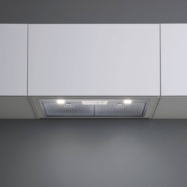 La cappa GRUPPO INCASSO E.ION di Falmec è un modello interamente realizzato in acciaio inossidabile AISI 304 da installare all'interno di un pensile della cucina, risultando perciò a scomparsa totale. Questo tipo di cappa è la scelta ideale per chi desidera una cucina dal design pulito e minimale, o per chi ha poco spazio a disposizione e vuole sfruttarlo il più possibile anche in altezza: nel pensile dove sarà alloggiata la cappa, infatti, resterà comunque dello spazio intorno all'elettrodomestico, e potrà essere sfruttato a piacimento.