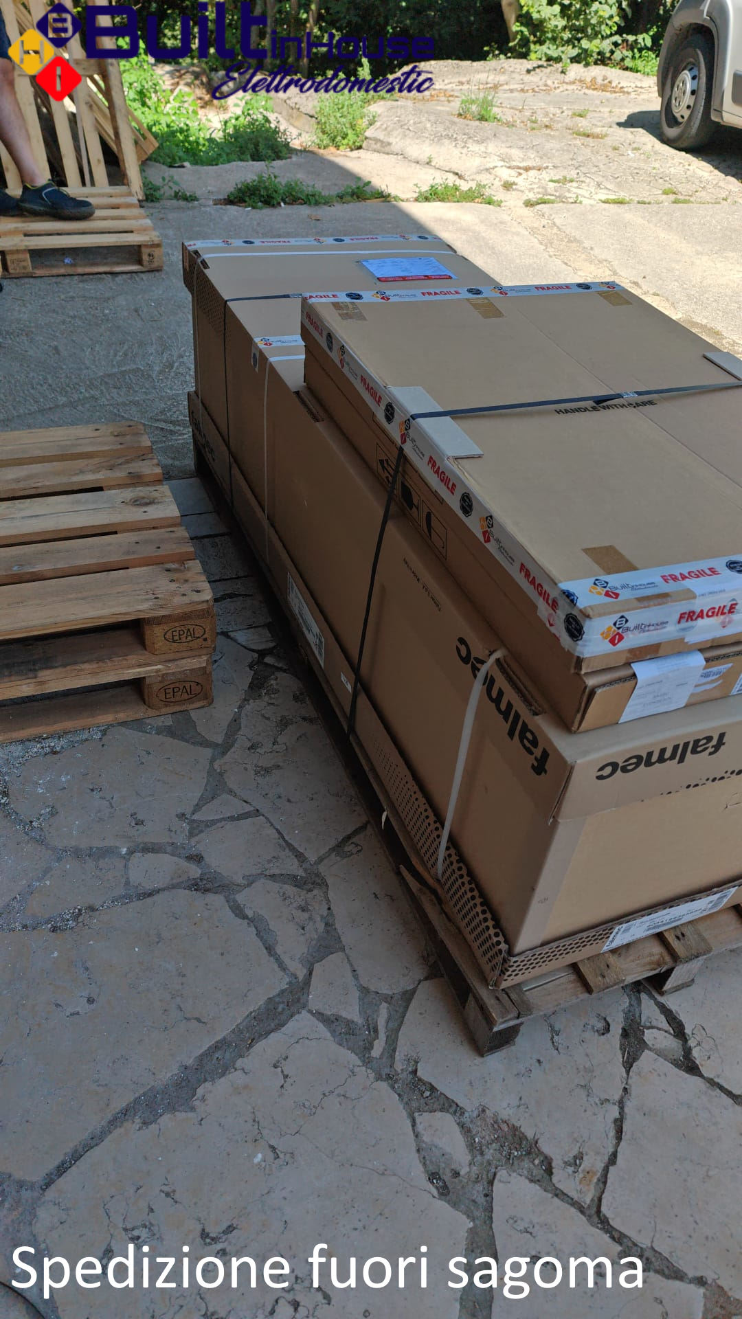 Il nostro processo di spedizione per gli elettrodomestici è pensato per garantire la massima sicurezza e integrità dei prodotti. Tutti gli elettrodomestici vengono posizionati su pallet robusti e sicuri, per evitare danni durante il trasporto.