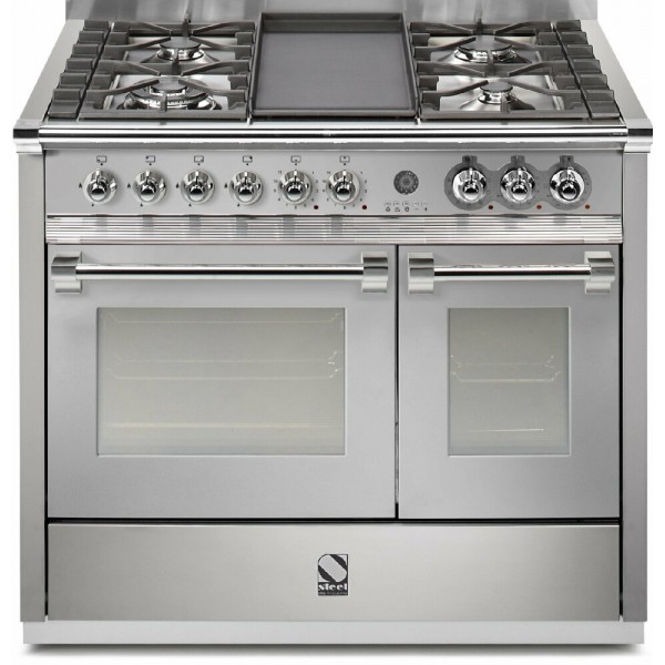 Steel Cucina da accosto AQ10SF Ascot 100 Cucina cm. 100 - forno combinato a vapore forno ausiliario elettrico : Colori ON DEMAND STEEL - ACCIAIO opzione standard, Configurazione Piano Cottura STEEL - 4M 4 bruciatori 1 wok 1 bruciatore mega wok, Finiture ON DEMAND STEEL - BRONZO