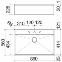 Il lavello FLEXI da incasso e filo dispone di una vasca 86x56 cm, raggio 0, con abbassamento per far scorrere gli accessori.